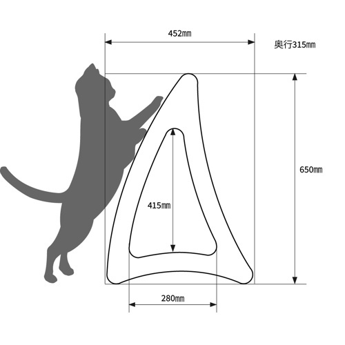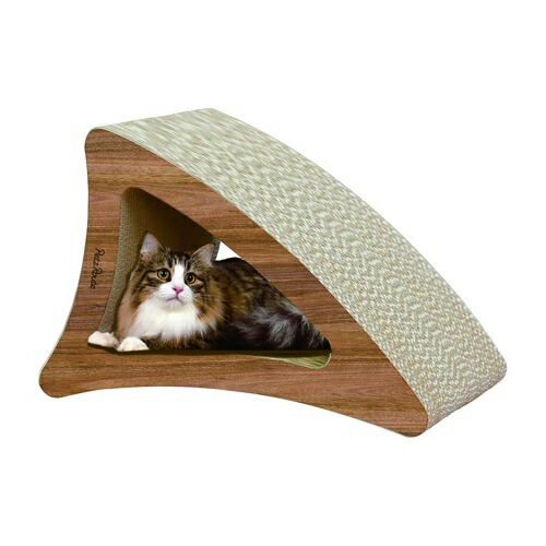 スタイリッシュで飽きの来ないモダンな家具に合わせやすい濃い茶の木目デザイン。立てて置いた時は猫ちゃんが爪とぎで一番大好きな背伸びをして思う存分爪とぎできる形状2種類のカーブは猫ちゃんの本能と気分や好みによって飽きの来ない設計としました。また、横に倒した時も2通りの使い方が出来るのも新しい発想で大きくラウンドで身体を預けながら爪とぎとくつろぎたい時にぴったり。反転させれば今度はゆりかごベッドに変身使い方色々です。