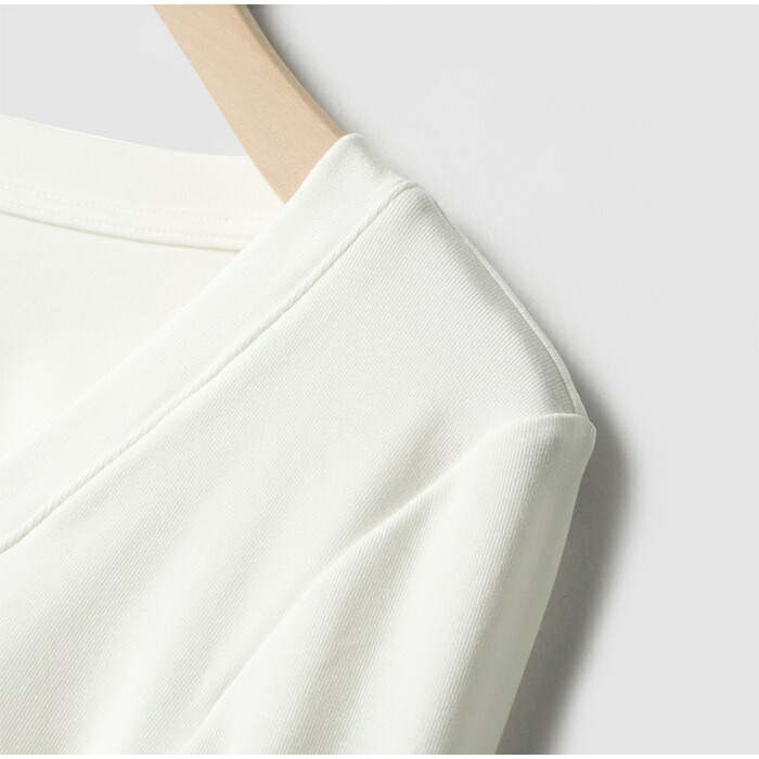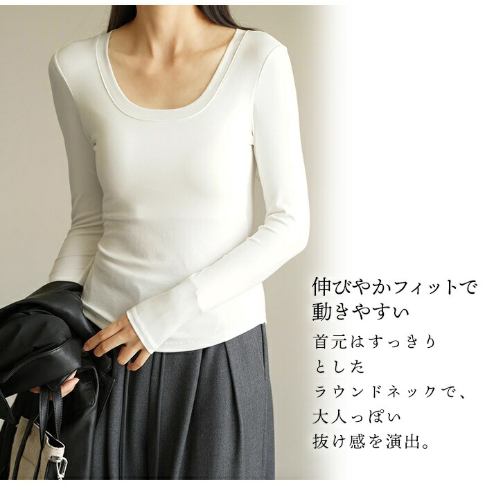 首元はすっきりとしたラウンドネックで、