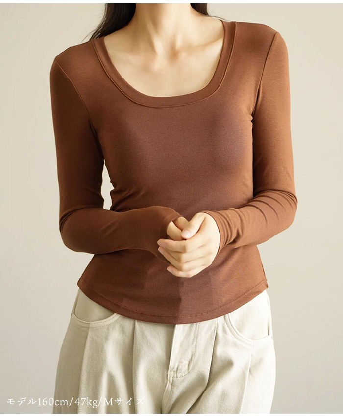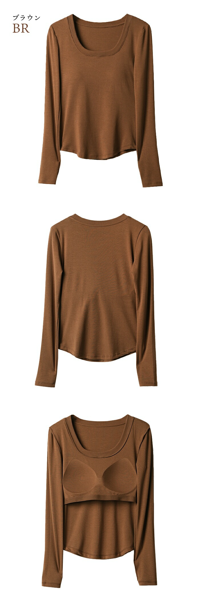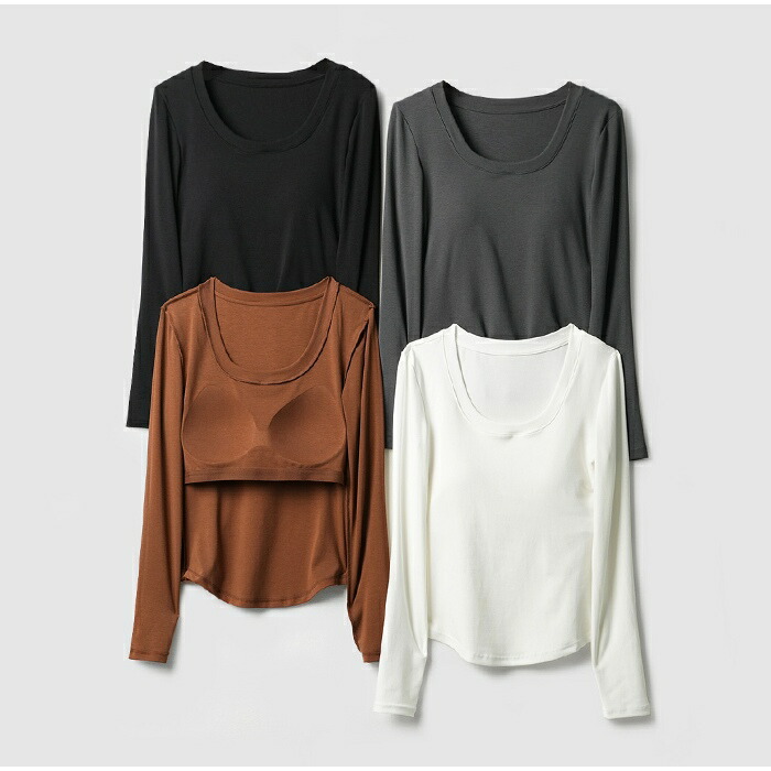 カップ付きトップス カップ付きインナー 長袖カットソー インナー不要 美シルエット 首元すっきり デコルテ見せ ストレッチ素材 楽ちんトップス 大人カジュアル ルームウェア ワンマイルウェア ベーシックトップス 着回し力抜群 下着いらず M〜XXLサイズ