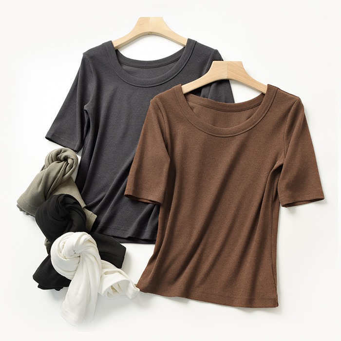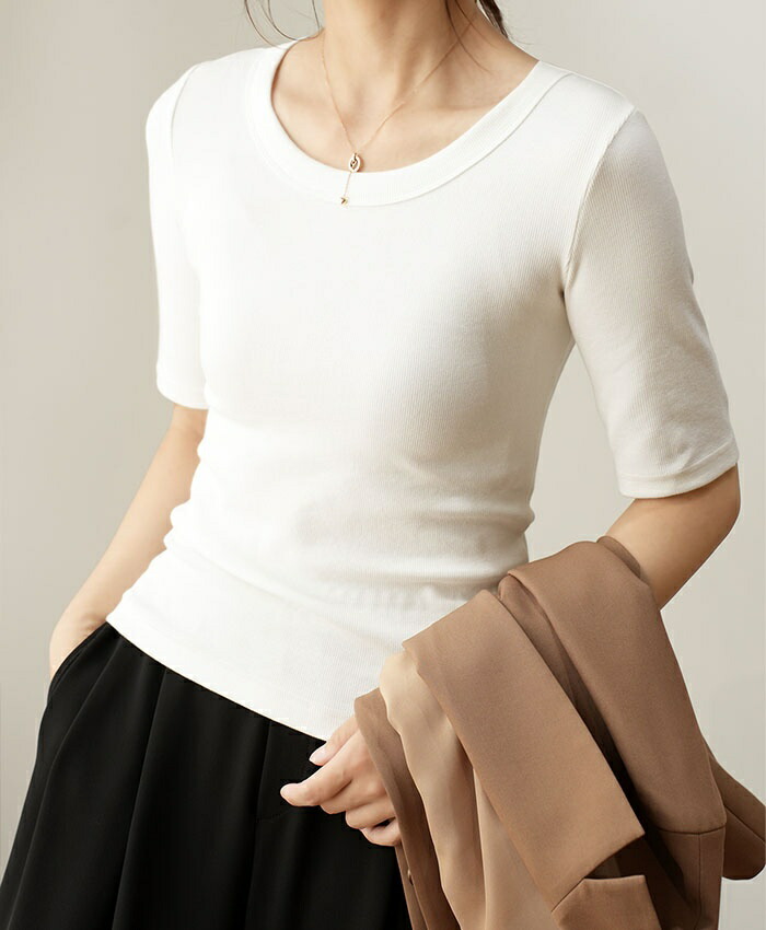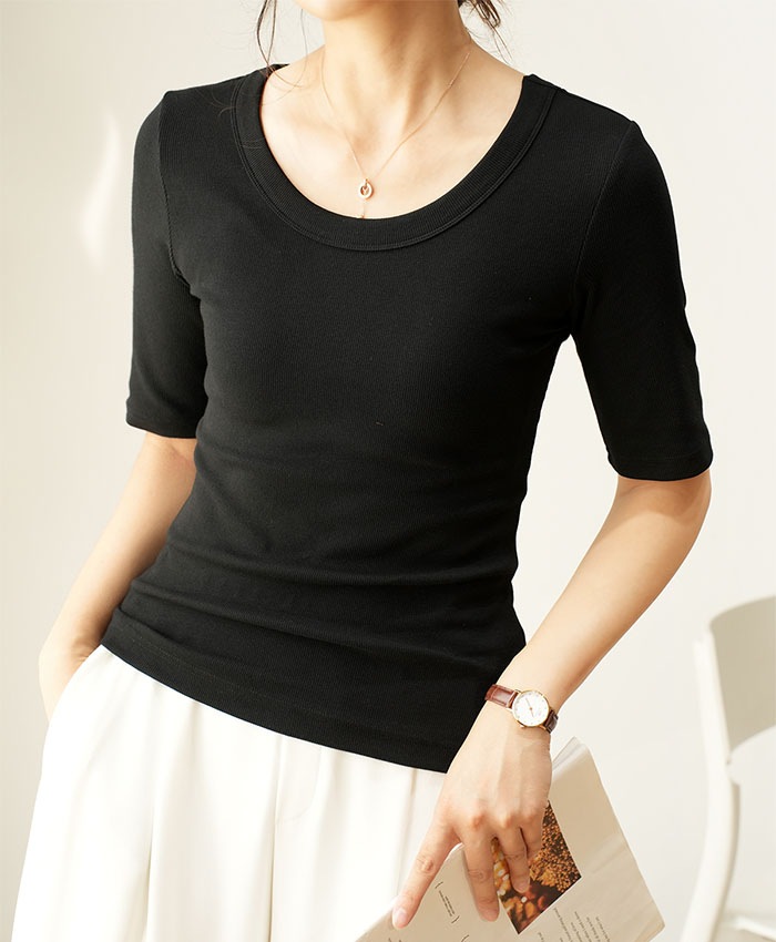#首元スッキリ #Tシャツ #レディース #カットソー #5分袖 #半袖 #ベーシックカットソー #選べる袖丈 #S〜2XL #シンプルデザイン #デコルテライン #カジュアル #オフィスカジュアル #多彩なカラーバリエーション #肌触り良い #快適着心地 #通気性 #吸湿性 #柔軟性 #耐久性 #ギフト #贈り物 #20代 #30代 #40代 #50代