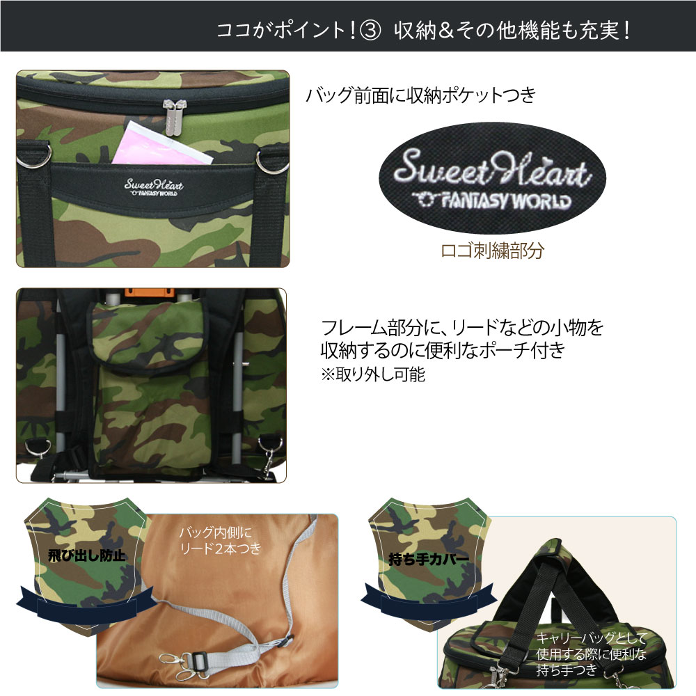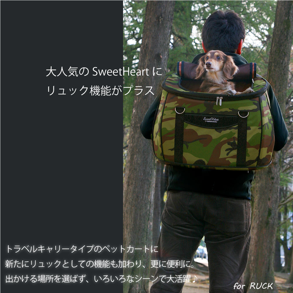 スイートハート リュックタイプ ペットカート Lサイズ ウッドランド迷彩 〜12kg コンパクトな多機能 犬 猫 ペット用 バックのみでも使用可能 SH-216MTCfw-sh-216mtc