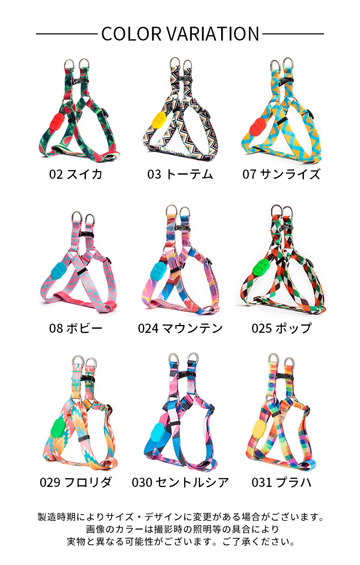 犬 ハーネス カラフル オシャレ お出かけ いぬ 犬用 プードル 小型犬 中型犬 大型犬 チワワ ヨークシャーテリア ペキニーズ マルチーズ トイプードル カジュアル アウトドア 可愛い 軽量