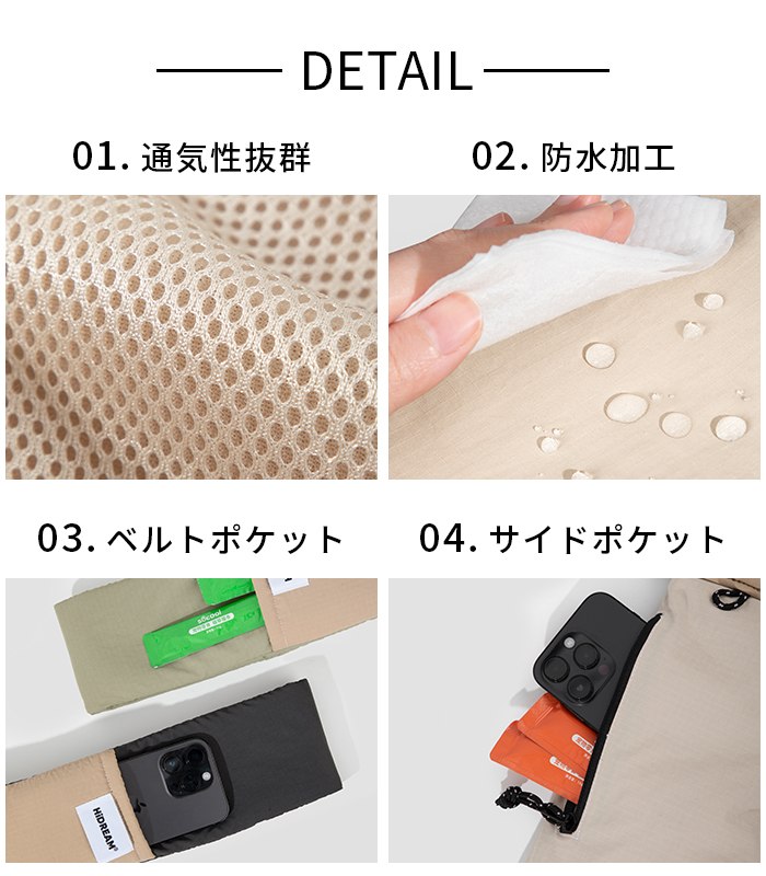通気性抜群/防水加工/サイドポケット付き/飛び出し防止リード付き