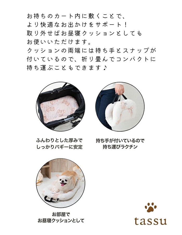 犬 犬用 バギークッション バギーオプション クッション 暖かい 秋冬 犬 ペットカートクッション バギー用 お散歩 犬 猫 ペット 温かい ピンク アイボリー tassu タッス
