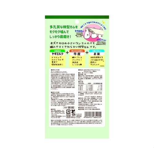 厚みのある牛皮を食べやすくくだき、消化の良いお米でしっかり固めたお腹にやさしいヤギミルク入りソフトガムです。