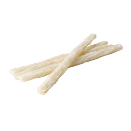 牛皮、米粉、食物繊維、タピオカ加工でん粉、還元水飴、山羊乳(脱脂)、グロビゲン(卵黄粉末)、グリセリン、酸化防止剤(ピロ亜硫酸Na)、保存料(ソルビン酸K)