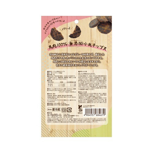 添加物や小麦粉等のつなぎも一切使用せず、厳選した馬肉だけで作ったパリッとした食感のチップスです。馬肉には鉄分とカルシウムが豊富に含まれており、愛犬の健康維持をおいしくサポートします。
