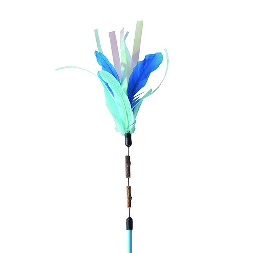 天然羽根とリボンがゆらゆら楽しい!弾力のある線材を使用した振りやすいじゃらしタイプ。