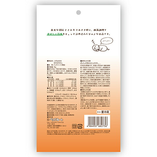 良質な国産ささみをそのまま使い、低温調理で香ばしい旨みをギュッと詰め込んだグルメな逸品です。