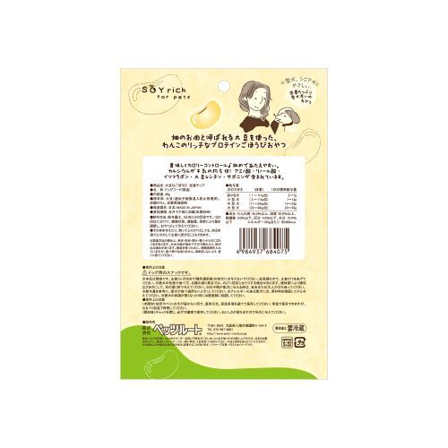 自然プロテイン♪ソイリッチ。畑のお肉と呼ばれる大豆を使ったわんこのリッチなプロテインごほうびおやつ。