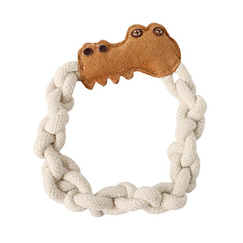 丈夫な牛革とロープを使ったおもちゃです。もこもこ編みのロープがやわらかく、しっかり噛みたいわんちゃんにもおすすめです。ワニの頭には牛革のにおいやヤシ繊維が詰まったしっかりとした噛みごこちを楽しめます。楽しく一緒に遊びましょう!