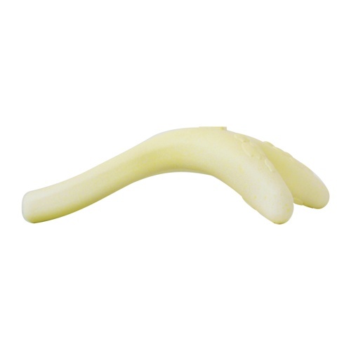 風になびく稲穂のイメージ。丸みのあるフォルムは、歯や歯茎を傷めにくく、お口にやさしい。3つに分かれた先端は、小さなお口、鼻ぺちゃ、鼻が長い子、色々な子が噛みやすい形状設計。アーチ形状は常にどこかが起き上がる部分があり、ホールドしやすく噛みやすい。