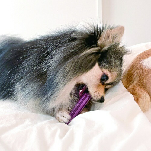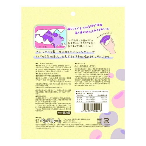 小さなお口でもかじりやすい歯車形状のデンタルおやつ!アントシアニンを多く含むブルーベリー配合。健康な目もおいしくサポート。