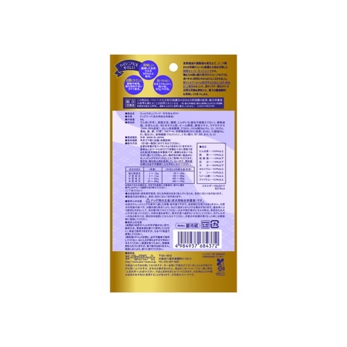 たん白質18.0%以上、脂質7.0 %以上、粗繊維1.0 %以下、灰分7.0% 以下、水分 34.0%以下、カルシウム0.5%以上、リン0.4%以上、リノール酸1.7%以上、ナトリウム0.3%以上、100g当たり約270kcal