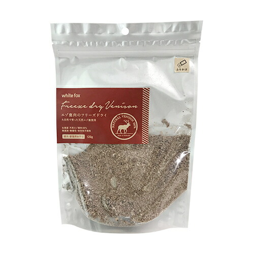 新鮮な天然エゾ鹿をそのままフリーズドライに仕上げました。フードへのトッピングとして幅広くお使いいただけます。