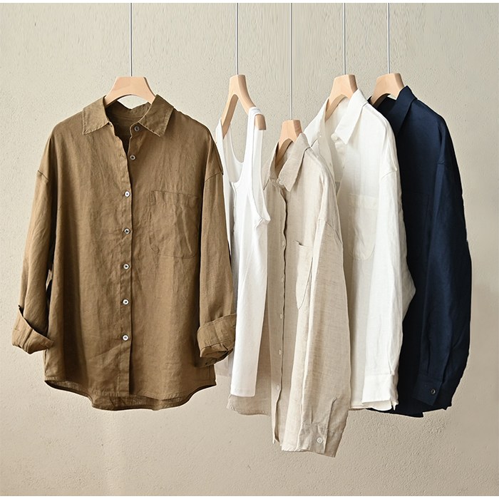 リネンシャツ レディース 麻100% 長袖シャツ ナチュラルファッション リネンブラウス 涼しいシャツ 春夏シャツ 羽織りシャツ 体型カバー 大人カジュアル くすみカラー 無地シャツ 麻シャツ シンプルトップス 洗えるシャツ オーバーサイズ M〜Lサイズ対応 吸湿速乾 ナチュラル系コーデ 重ね着に便利 オフィスカジュアル