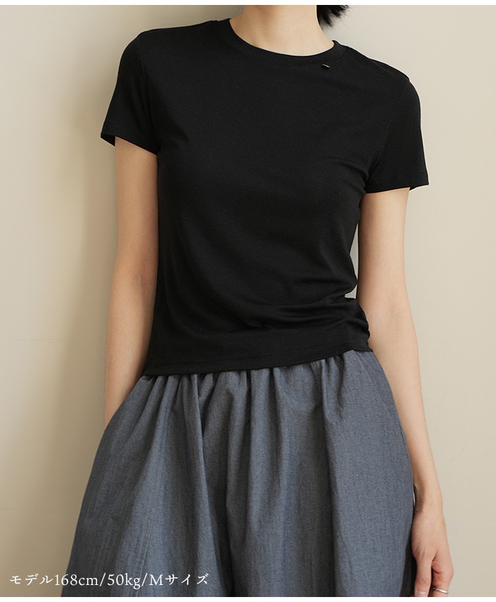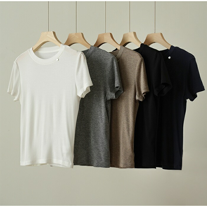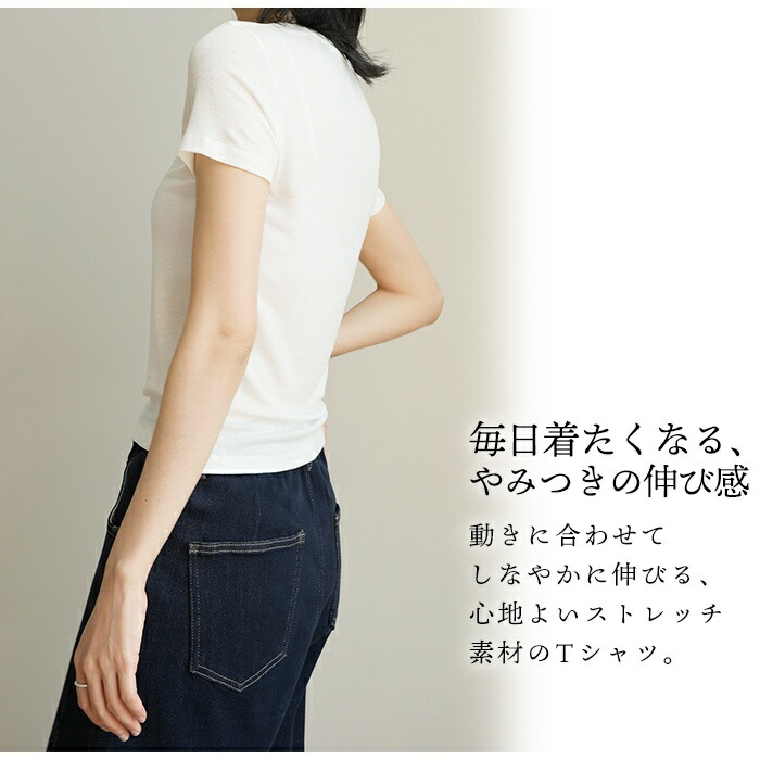超柔らか ストレッチ Tシャツ カットソー インナーTシャツ キレイめ レディース トップス シンプル 肌に優しい エコ素材 伸びる 高伸縮 快適 重ね着 インナー 無地 ブラック アイボリー 5625625022