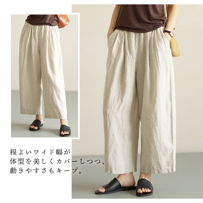ワイドパンツ リネンパンツ 麻パンツ レディース リネン リヨセル ウエストゴム パンツ 涼しいパンツ ナチュラルパンツ 夏用パンツ オフィスカジュアル 大きいサイズ リネン 体型カバー 通気性パンツ 吸水速乾 春夏リラックスウェア ゆったりパンツ ナチュラルファッション 部屋着 外出 両用パンツ