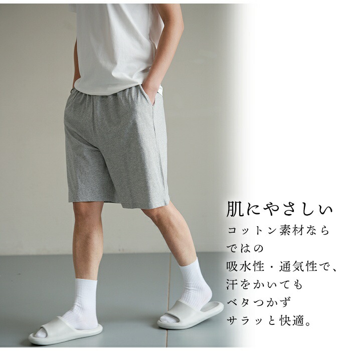 綿100% ルームパンツ メンズ 3分丈 ポケット付き ショート丈 短パン コットン100% コットン 綿 夏 部屋着 ショートパンツ シンプル 薄手 快適 ウエストゴム 肌にやさしい 5671825671822