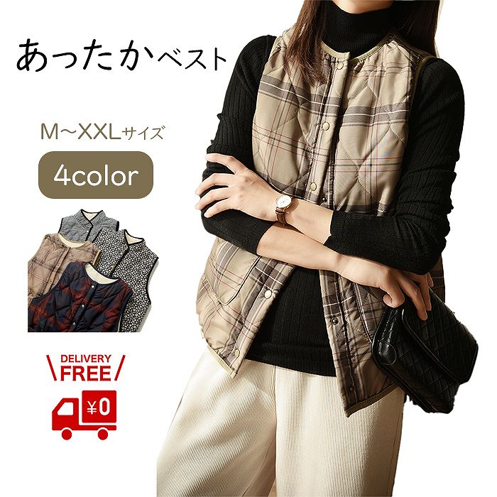 あったか キルティングベスト ダウン ベスト 裏起毛 レディース 冬 フリース もこもこ 大きいサイズ 起毛 前開き クリスマス プレゼント おでかけ 防寒 軽い5681642