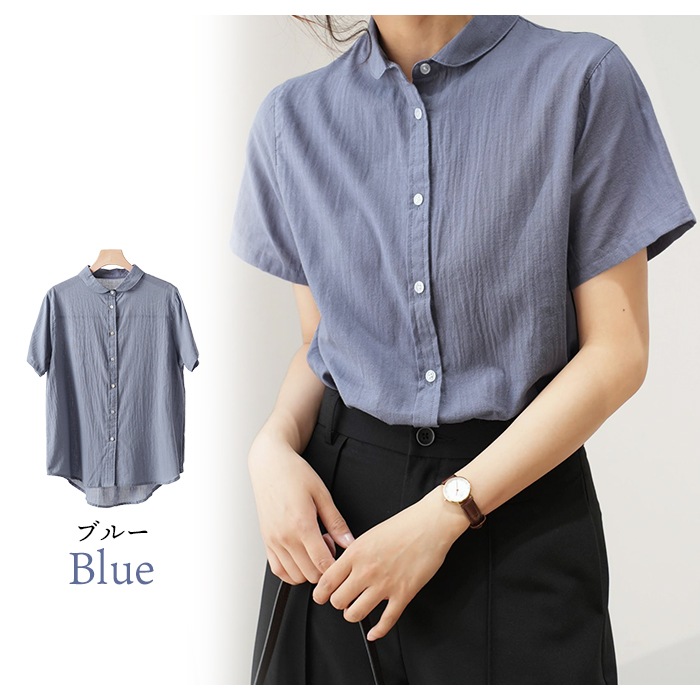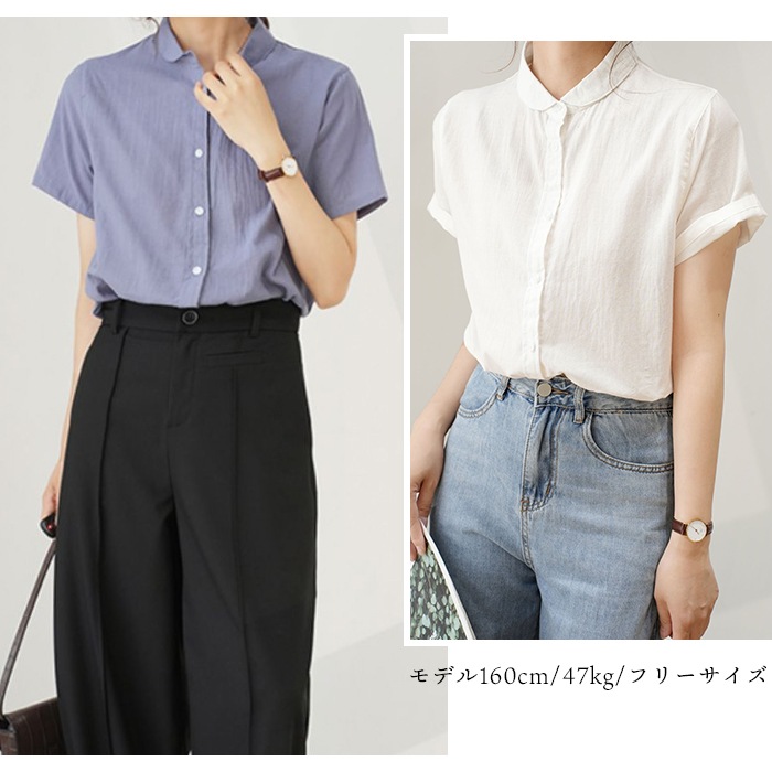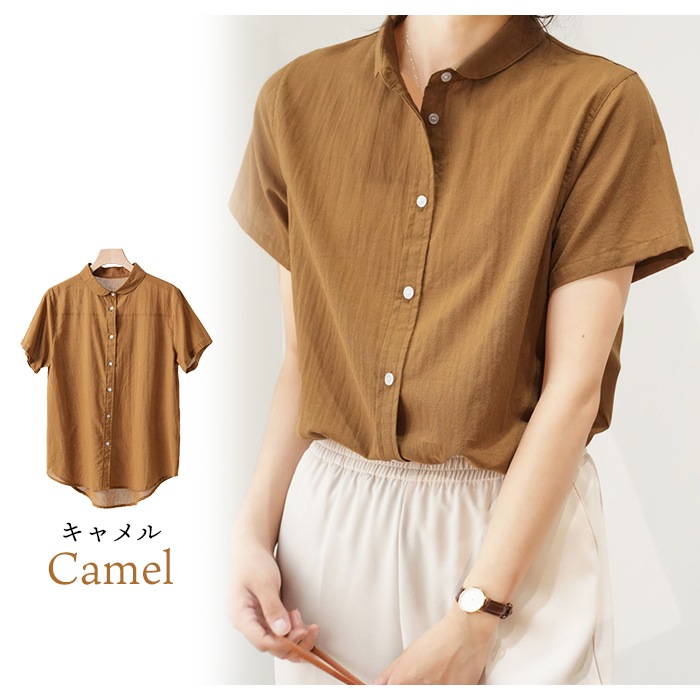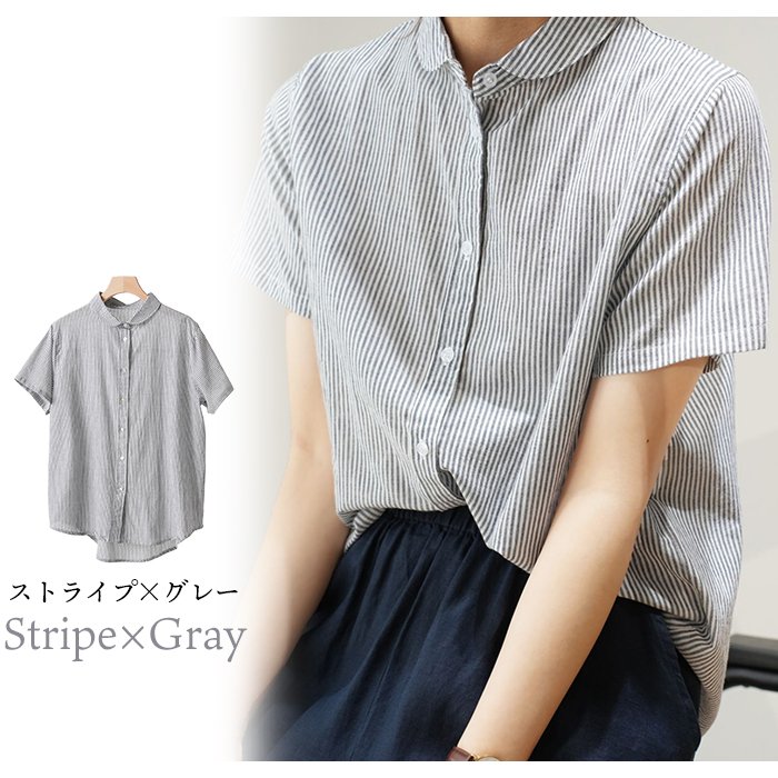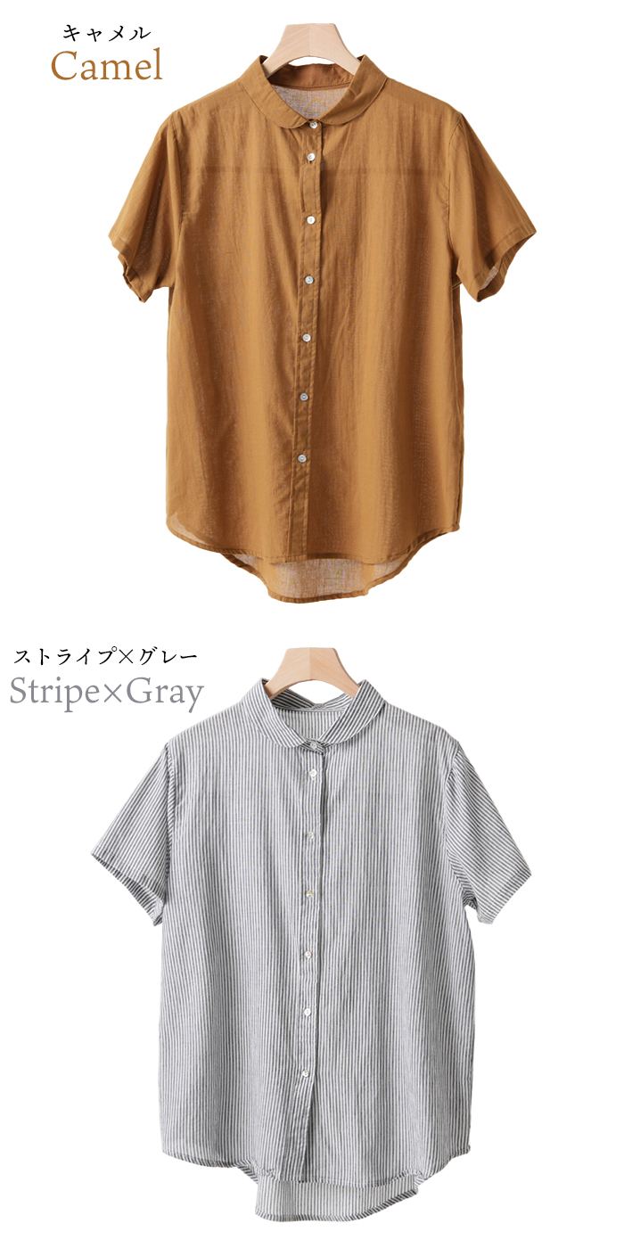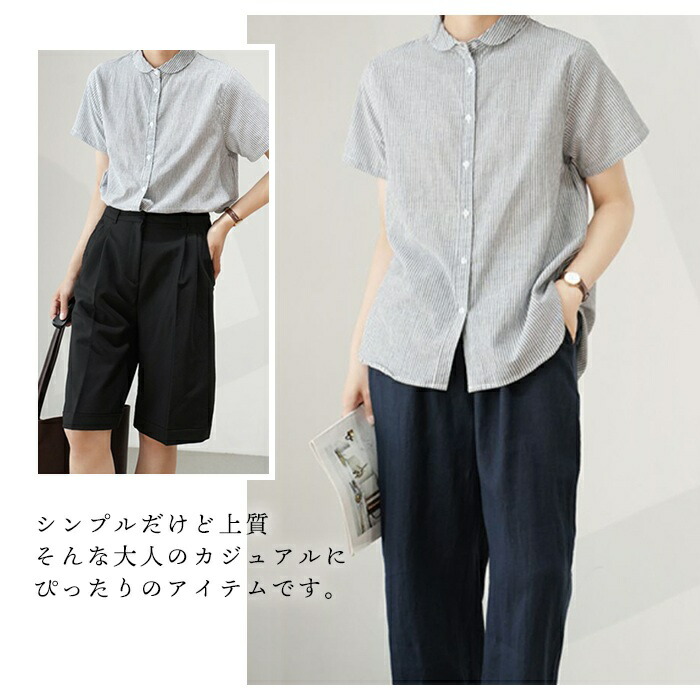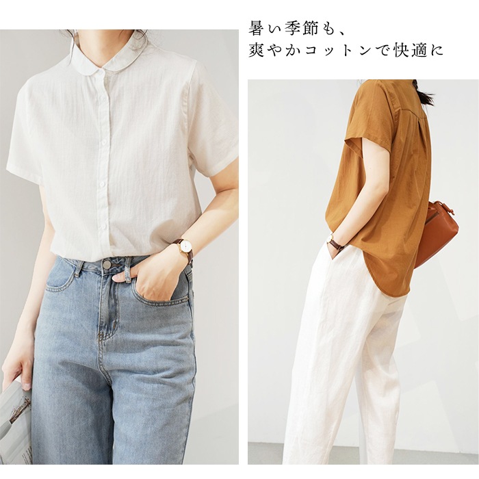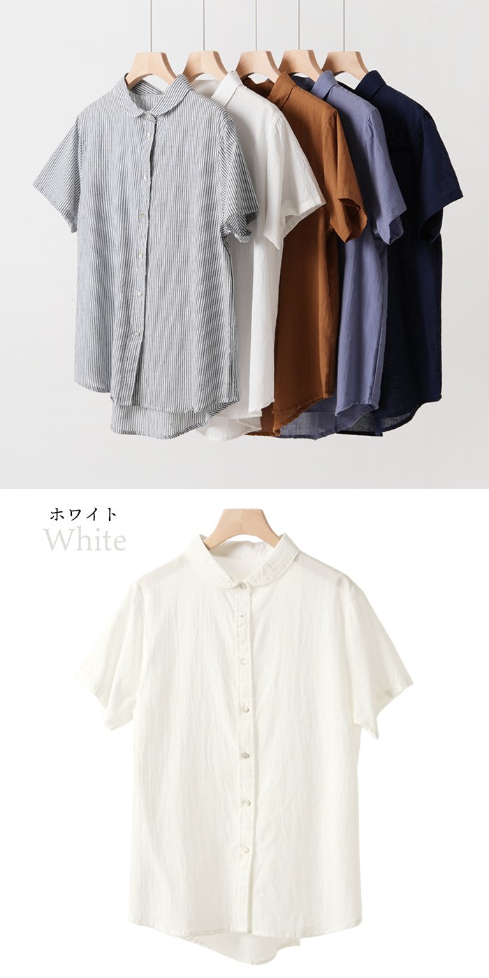 半袖シャツ レディース 綿100% 無地 コットン100% トップス 大人カジュアル 夏服 シンプル 半袖トップス 吸汗 通気性 快適 ホワイト キャメル ブルー ネイビー ストライプ グレー 体型カバー 涼しい 半袖 カジュアル きれいめ 大人 20代 30代 40代 50代