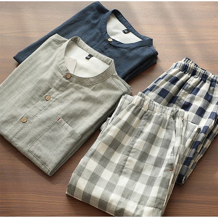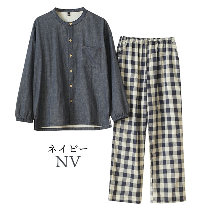 二重ガーゼ ルームウェア メンズ ガーゼ パジャマ 男性 コットン100% 上下セット 春 夏 秋 長袖 セットアップ 部屋着 綿100 ナイトウェア 男性用 吸水性 通気性 ギフト