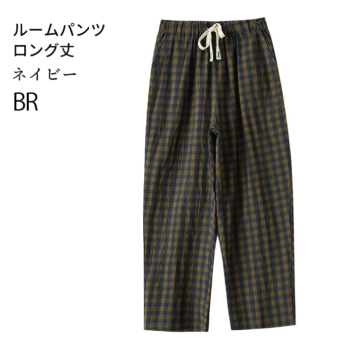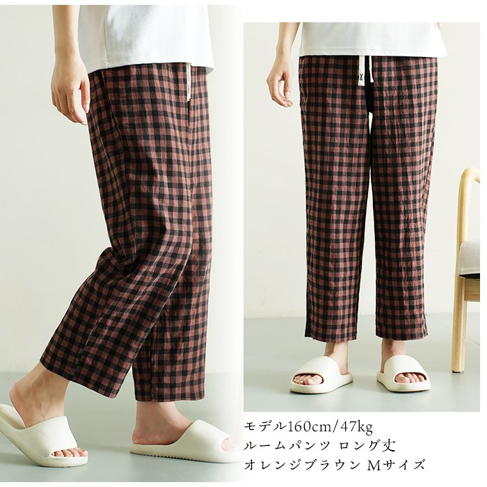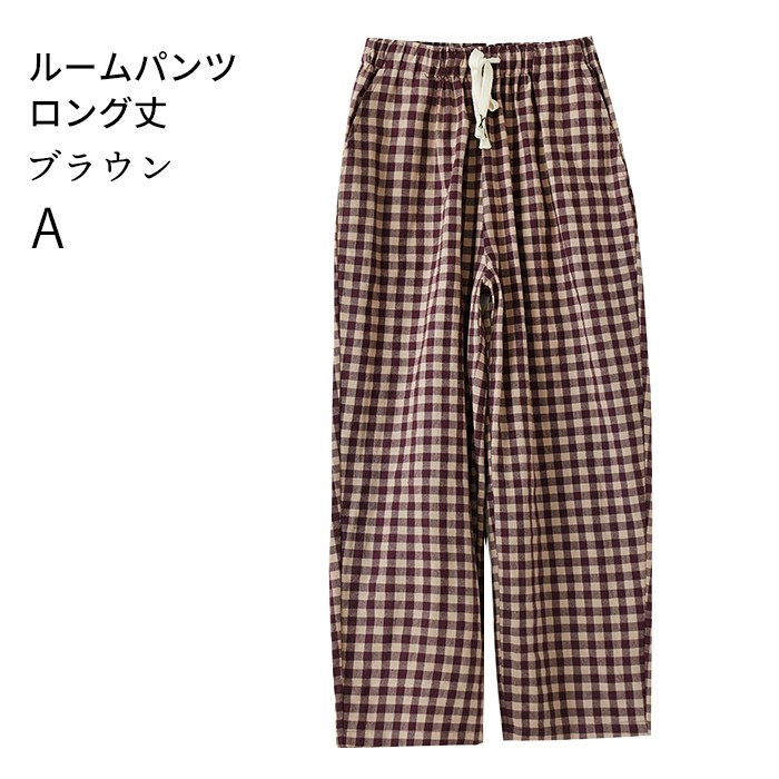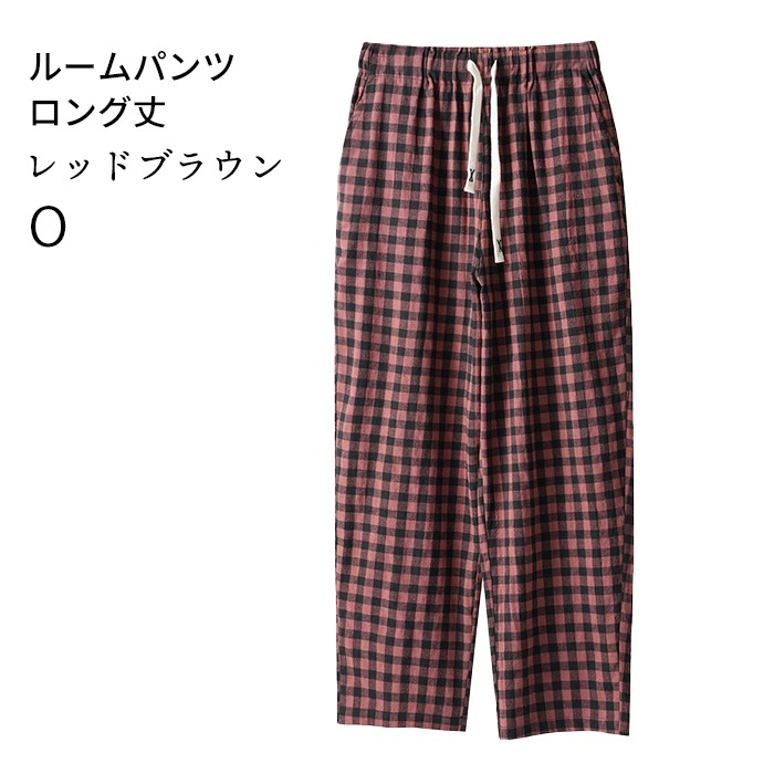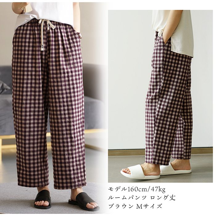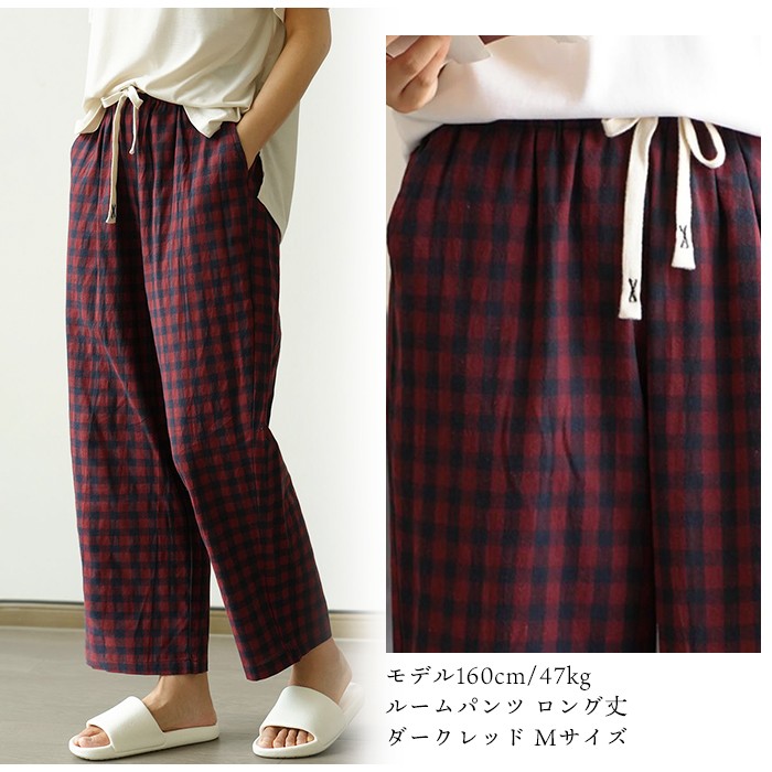 スイモク 綿100% ルームパンツ チェック柄 ロング丈 サラサラ パジャマ 快適 部屋着 ポケット付き ゆったり ルームウェア レディース 春 夏 長ズボン ナイトウェア コットン シンプル オシャ5686416