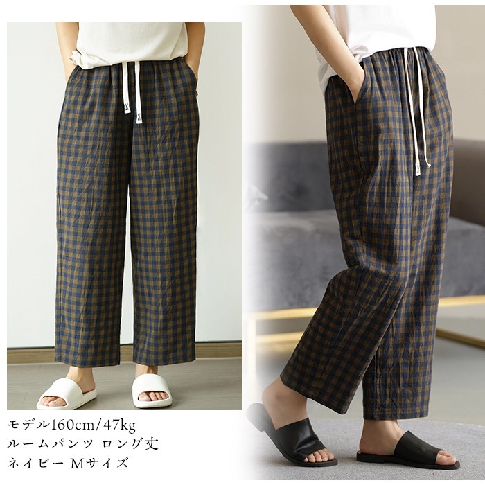#レディースルームパンツ #綿100% #サラサラ感 #通気性 #吸湿性 #シンプルデザイン #スタイリッシュ #女性らしいシルエット #ポケット付き #フィット調整可能 #カジュアルスタイル #リラックスウェア #チェック柄 #オールシーズン対応 #快適な着心地 #M〜XLサイズ対応 #おしゃれルームウェア #スッキリ #オシャレ