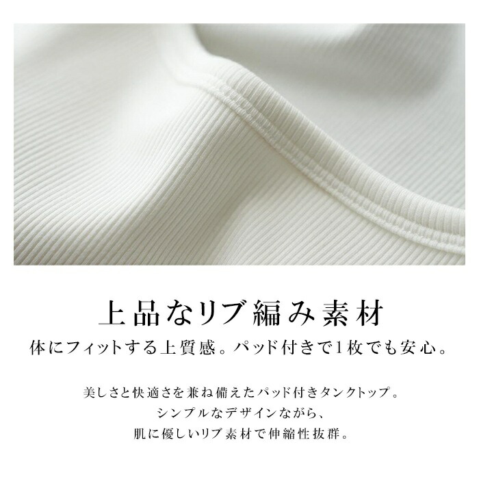 美しさと快適さを兼ね備えたパッド付きタンクトップ。