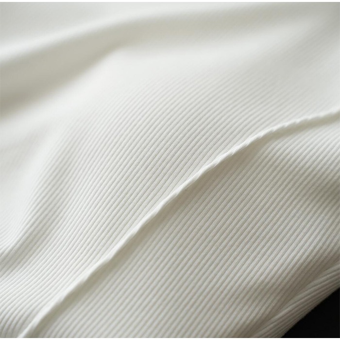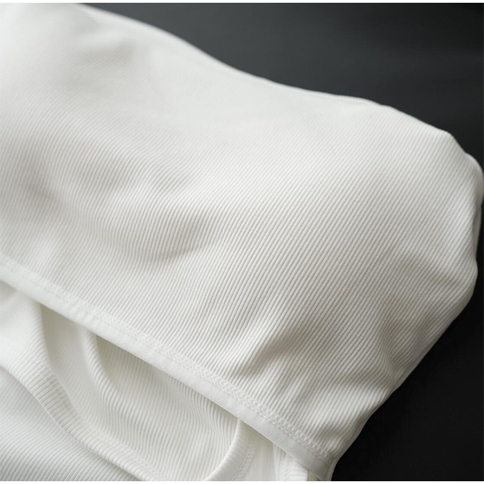 肌に優しいリブ素材で伸縮性抜群。