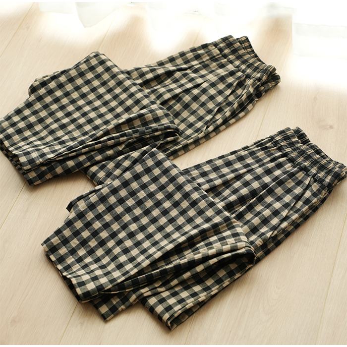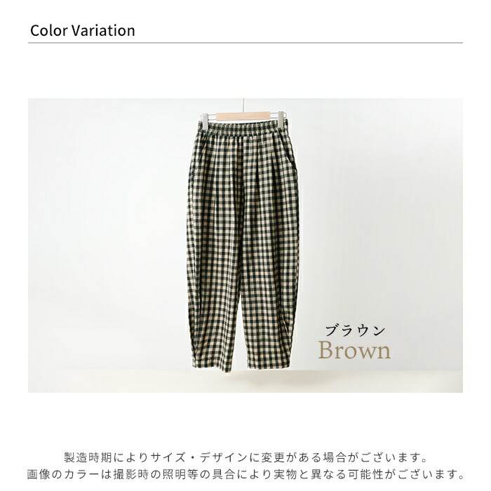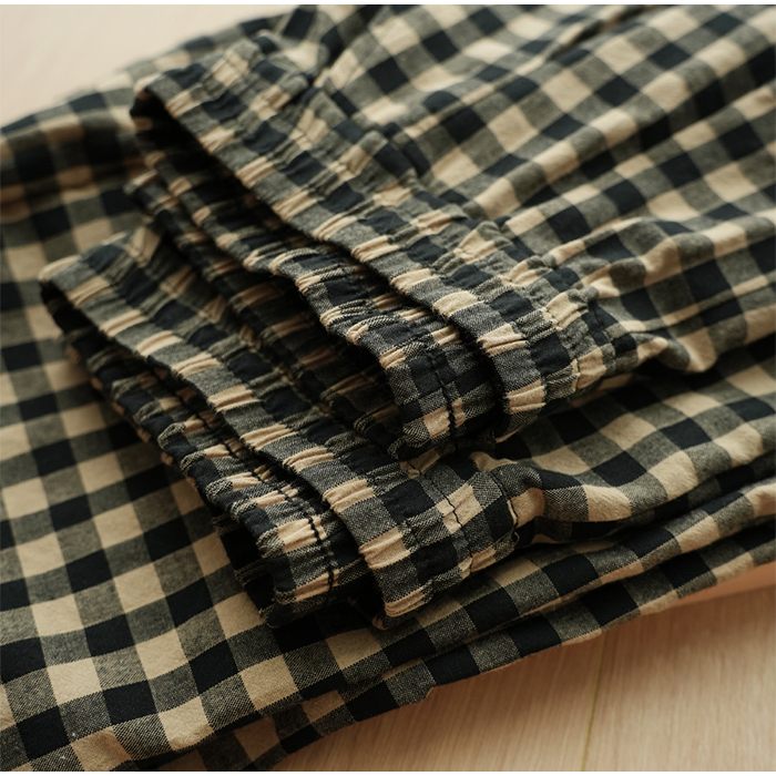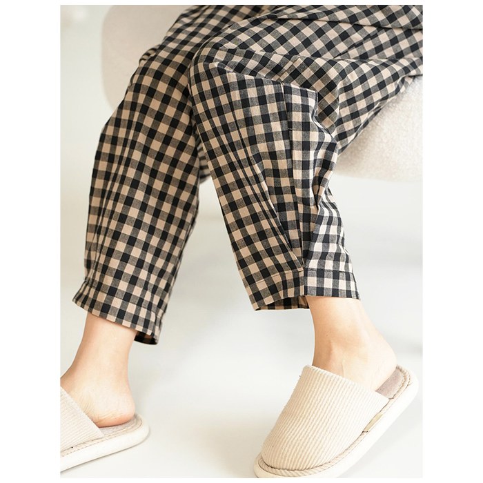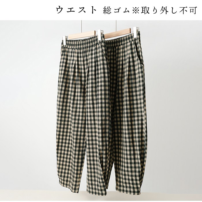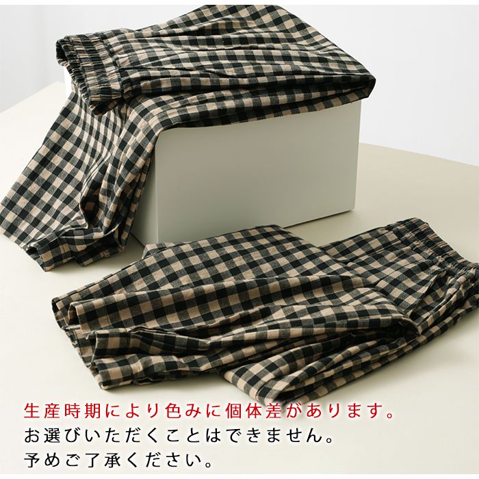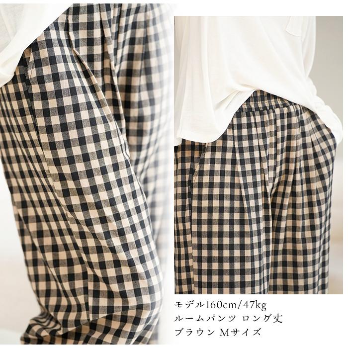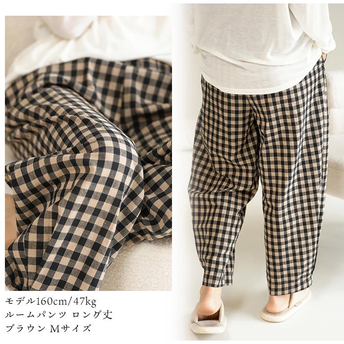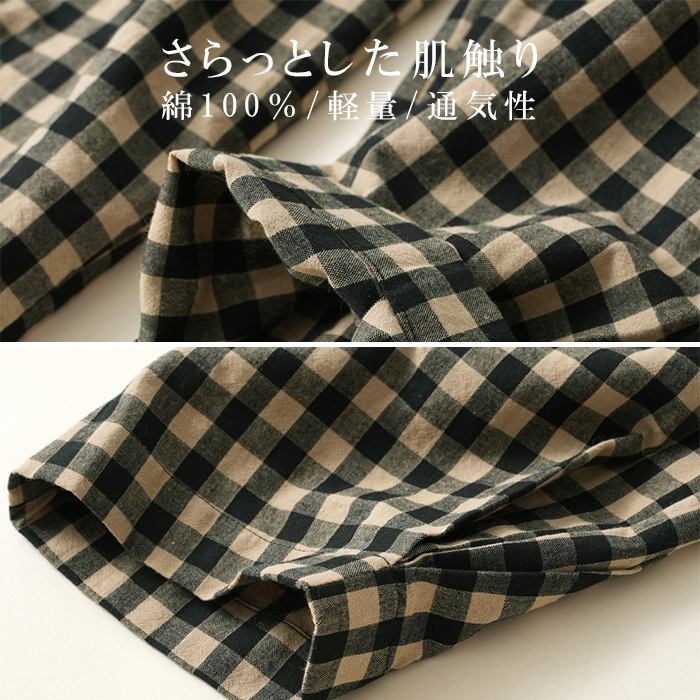 綿100% ルームパンツ レディース 春 夏 秋 寝巻き 裾タック パジャマ チェック柄 ロング丈 サラサラ 快適 部屋着 ポケット付き ウエストゴム ゆったり ルームウェア 長ズボン ナイトウェア5687353