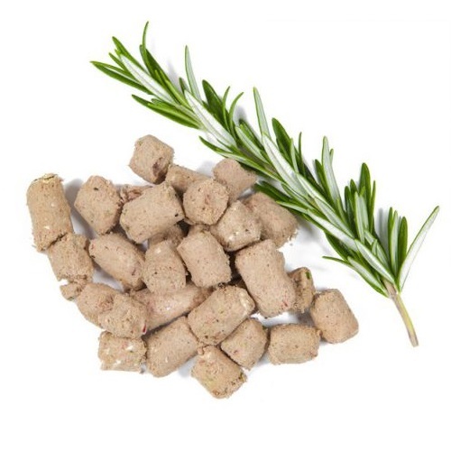食物アレルギーを発症しにくいブラッシュテイルを主原料に、各種効果を期待できるマヌカハニー、チアシード、バージンココナッツオイル、ホキ肝油、緑イ貝、ケルプを配合しています。素材の「生」を大切に!安心のフリーズドライ製法で作っています。3倍量の水または37度以下のぬるま湯でふやかして与えるとおいしさ満点。フリーズドライドッグフードなので、お湯で戻すとまるで手作りフードように子犬からシニア期のワンちゃんまで与えやすい食事を作ることが出来ます。特に食物アレルギーが心配な犬におすすめします。