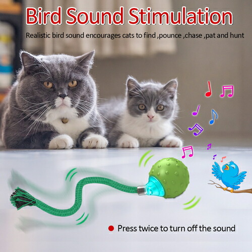 ボタン1つで3つのモードに切り替え。5分間作動するとスタンバイモードに切り替わり、1時間後再び30秒作動します。スタンバイモード中にペットが触れると再び5分間動作します。猫の本能を刺激する鳥のサウンドは電源ボタンを2回押すとサウンドオフになります。