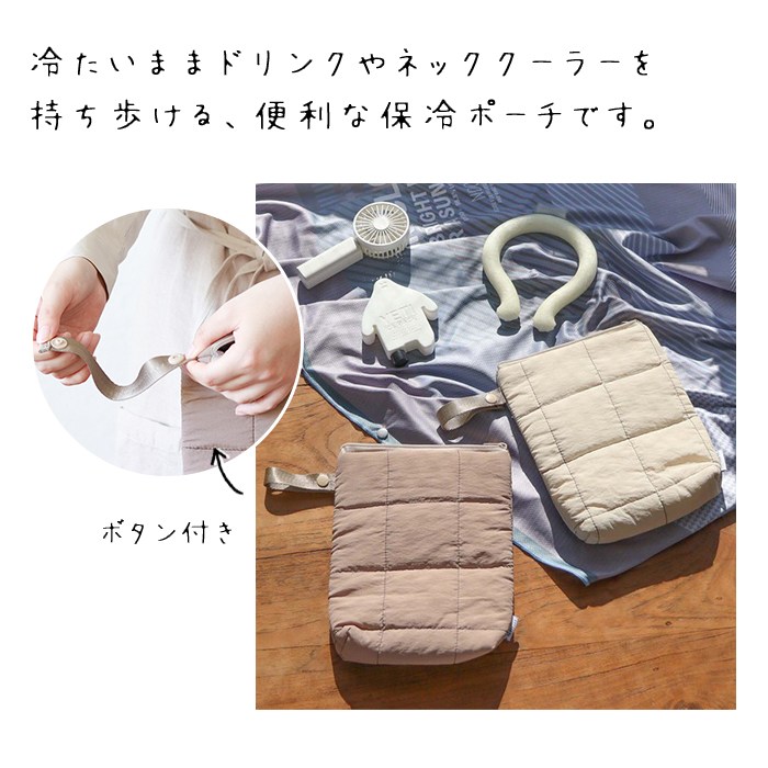 la flaner ラフラネ 保冷ポーチ ポーチ 保冷ミニポーチ クールネック アイスリング クールリング ネックリング ネッククーラー クーラーポーチ 薄型 夏 レジャー アイス 保冷剤 持ち運び ひんやり アルミ蒸着シート アイボリー ベージュ 9254