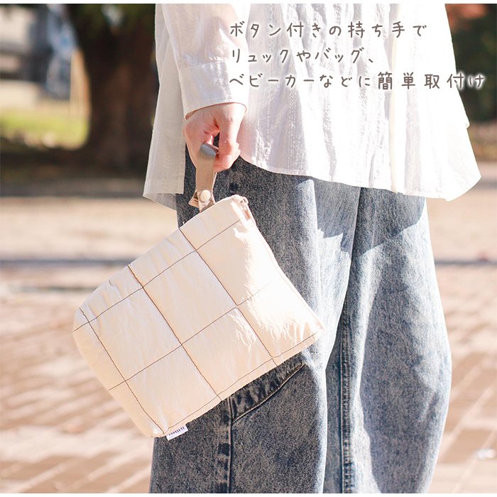 さらに、ボタン付きの持ち手でリュックやバッグ、