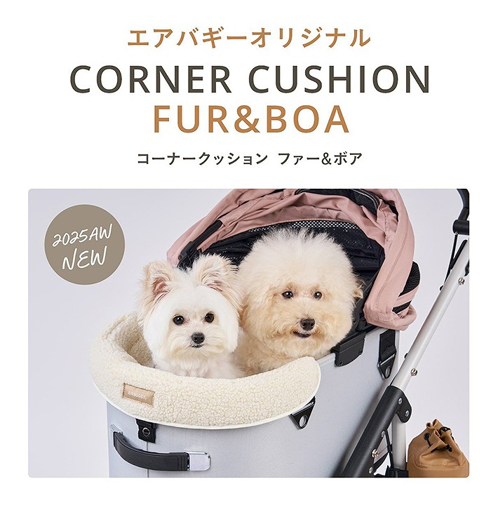 AIRBUGGY エアバギー 25-26AW新作 コーナークッション ファー ボア あごのせクッション 洗える 金具不使用 ふわふわ あったか かわいい 快適 枕 カバークッション ペットカート DOME3 WIZX ギフト お出かけ お散歩 旅行 犬 犬用 小型犬 中型犬 シニア犬 正規品 AB-AD2895