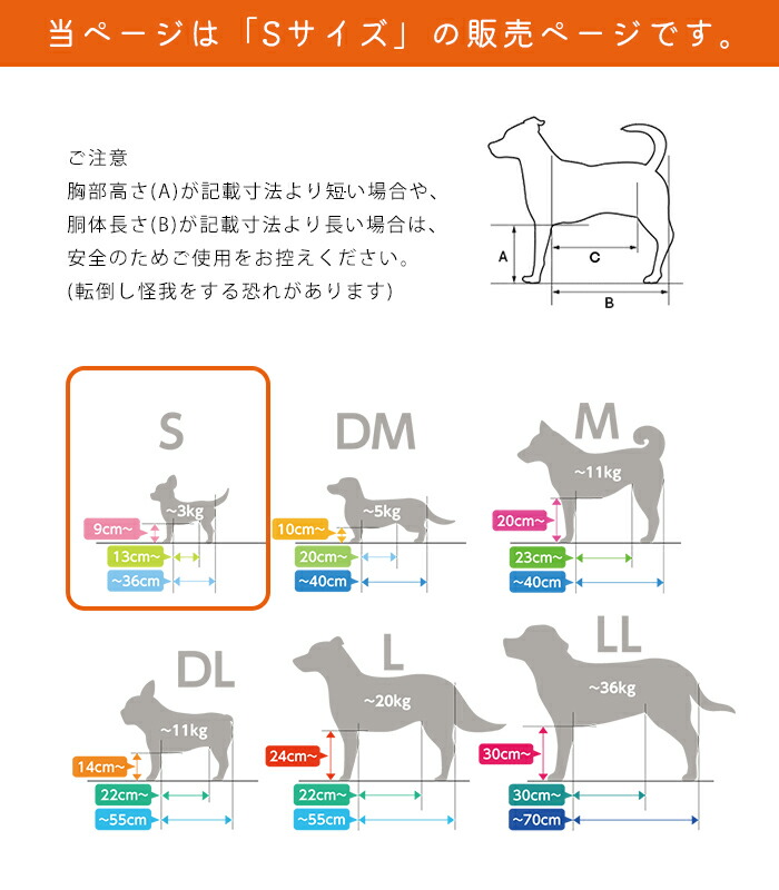 ワンちゃんが胸部や腹部等への圧迫が望ましくない病症の場合は動物病院様へ相談のうえでご使用ください。