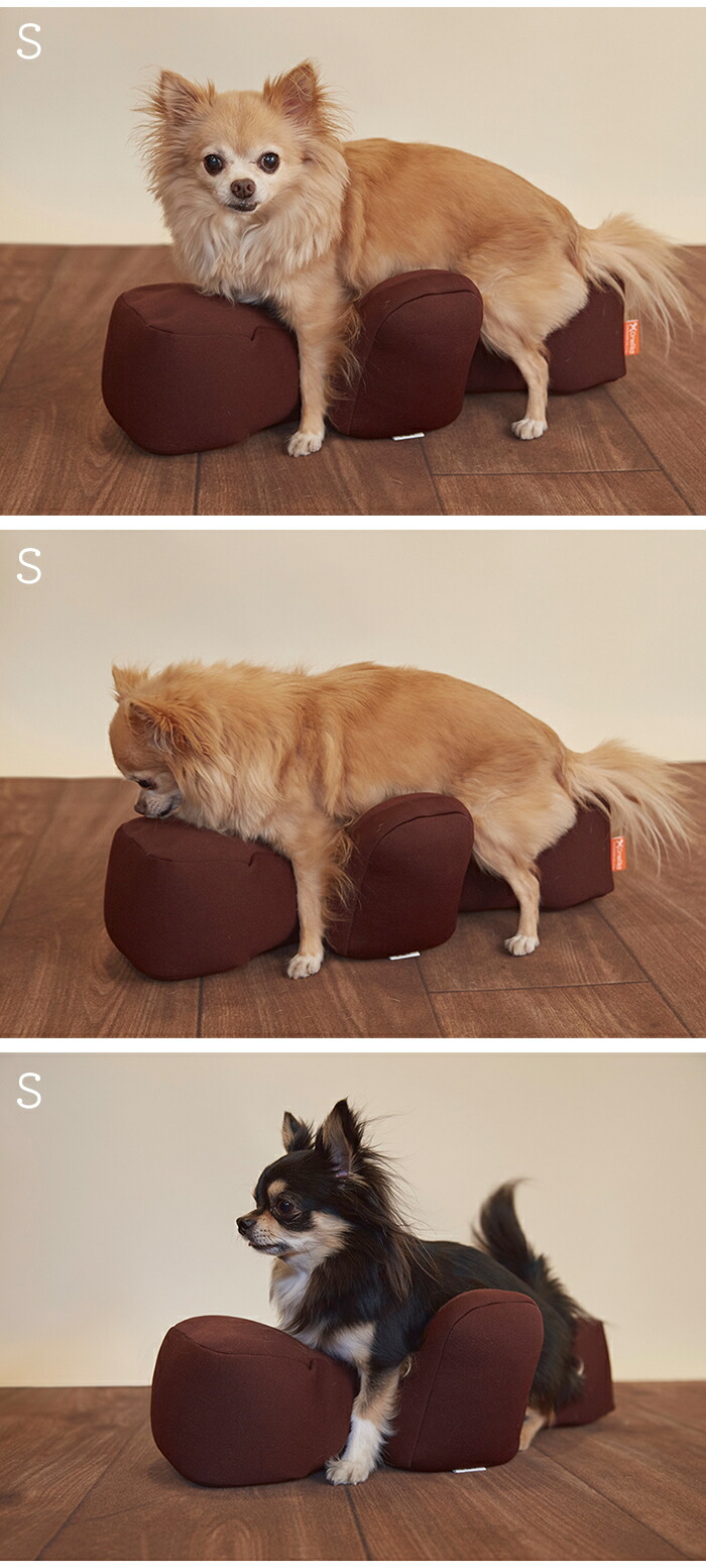 Aワンちゃんが立つための補助をするクッションなので足が着くサイズをお選びください。足が着地することでワンちゃんの気分も落ち着きます。