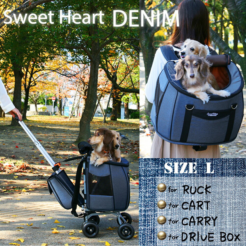 スイートハート リュックタイプ ペットカート Lサイズ デニム 〜12kg コンパクトな多機能 犬 猫 ペット用 バックのみでも使用可能 SH-216DMfw-sh-216dm