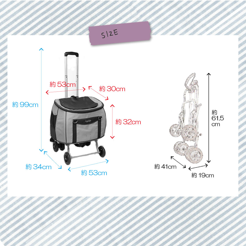■サイズ:約53×34×99cm、(折りたたみ時)約41×19×61.5cm、(バッグ)約53×30×32cm