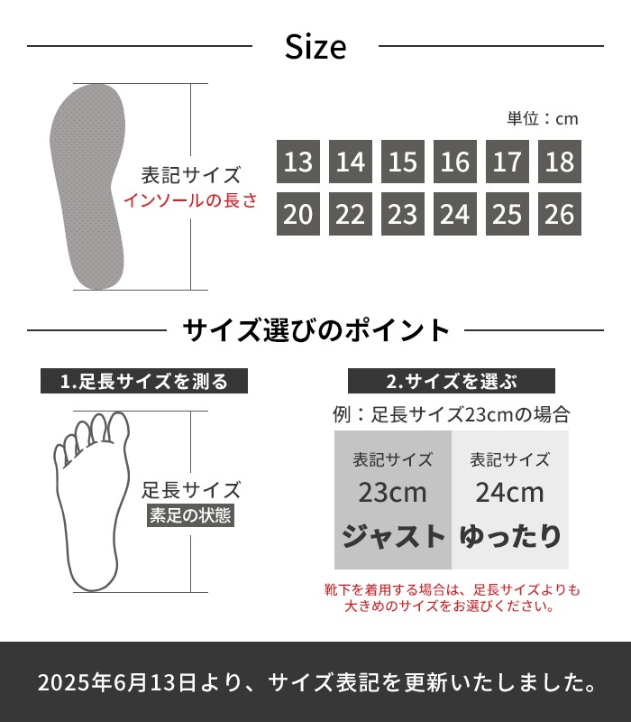 足長サイズよりも大きめのサイズをお選びください。