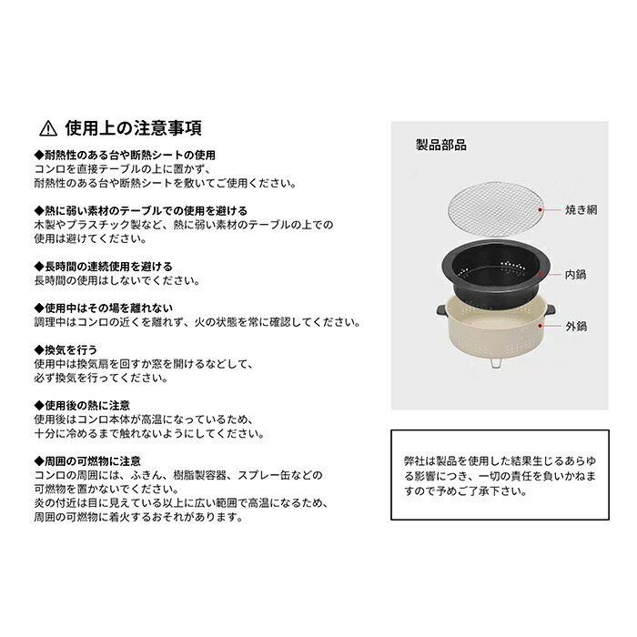 コンロを直接テーブルの上に置かず、耐熱性のある台や断熱シートを敷いてご使用ください。