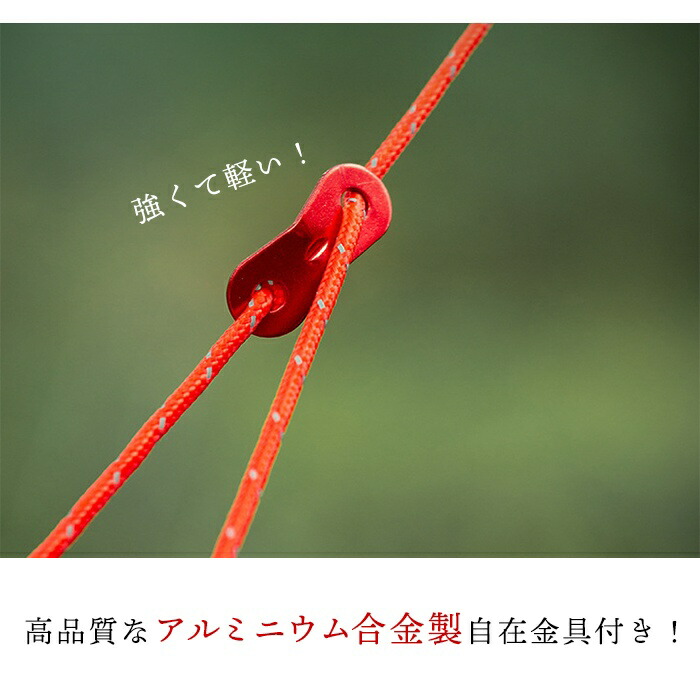 テントロープ ガイロープ アウトドアロープ タープロープ キャンプロープ 反射 自在金具付き ロープ 4m 丈夫 タープ 設営 夜間 見える アウトドア ギアキャンプ 荷物 固定 防災用 多用途 自在金具 軽量 アルミニウム合金