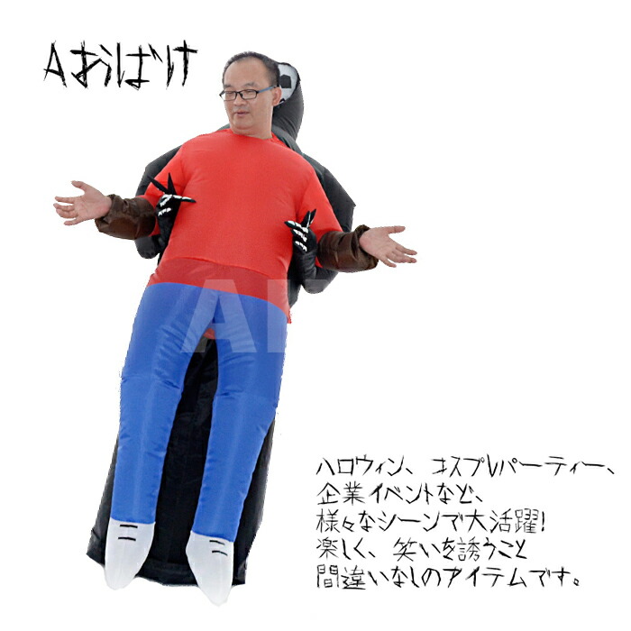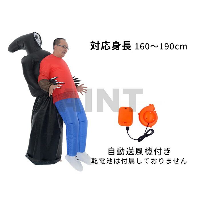 エアコス おばけ お化け モスマン コスチューム 着ぐるみ コスプレ ハロウィン エアコスチューム ハロウィン仮装 ホラーコスチューム パーティー 送風機付き 自動膨張式 膨らむ エアー式 膨張式 大g359