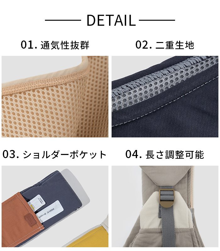 通気性抜群/ポケット付き/飛び出し防止リード付き
