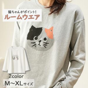 ルームウェア パジャマ トップス レディース 部屋着 長袖シャツ ナイトウエア 薄手 猫 綿 肌に優しい ホワイト グレー生地が柔らかい 5683034 肌触りの良い綿素材のルームウェアのトップス。猫が可愛い! 【商品番 […...