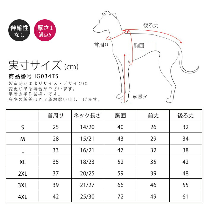 2XL首周37/ネック長さ20-25/胸囲59/前丈39/後丈48
