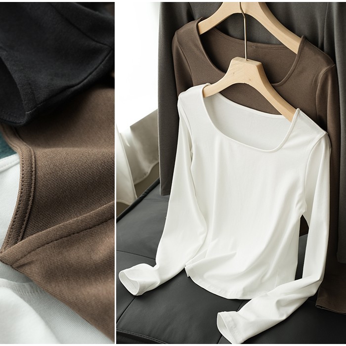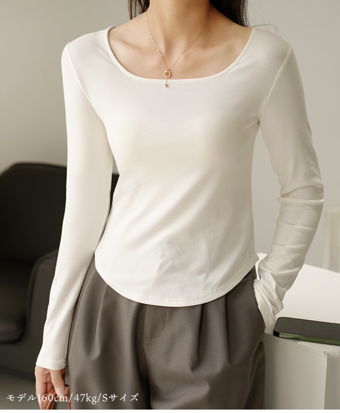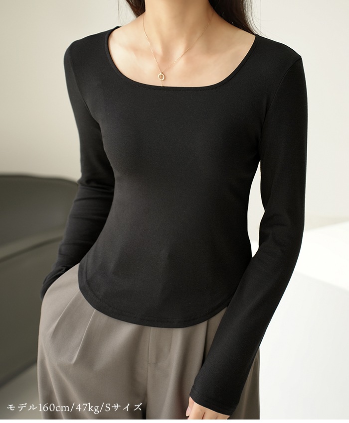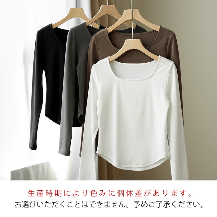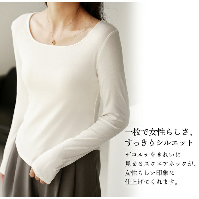 スクエアネック カットソー 長袖 首開き 首元 スッキリ 骨スト Tシャツ 薄手 レディース トップス 無地 デイリー 肌触りの良い素材 オフィス シンプル 下着 肌着 重ね着 着回し ブラック ホワj-23380