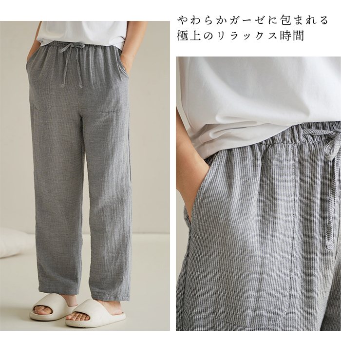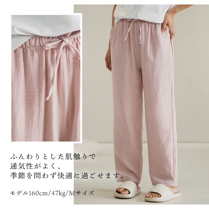 綿100% ルームパンツ 二重ガーゼ パンツ ガーゼ パジャマ ボトムス コットン レディース メンズ ナチュラル 部屋着 春夏秋冬 ふんわり 軽い 快適 ルームウェア ペア 通気性 軽量 柔らかい肌触り 母の日 父の日 ギフト 贈り物 ポケット付き