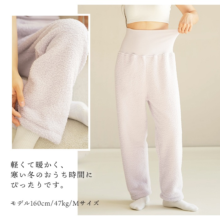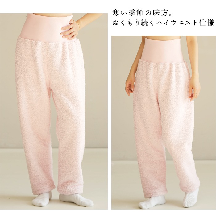 ハイウエスト ルームパンツ レディース 冷え対策 パジャマ ボトム もこもこパンツ 冬 裏起毛 パンツ 部屋着 腹巻付き 暖かい ルームウェア 寝る時 あったか ズボン 防寒 リラックスパンツ あったか もこもこ M〜XL